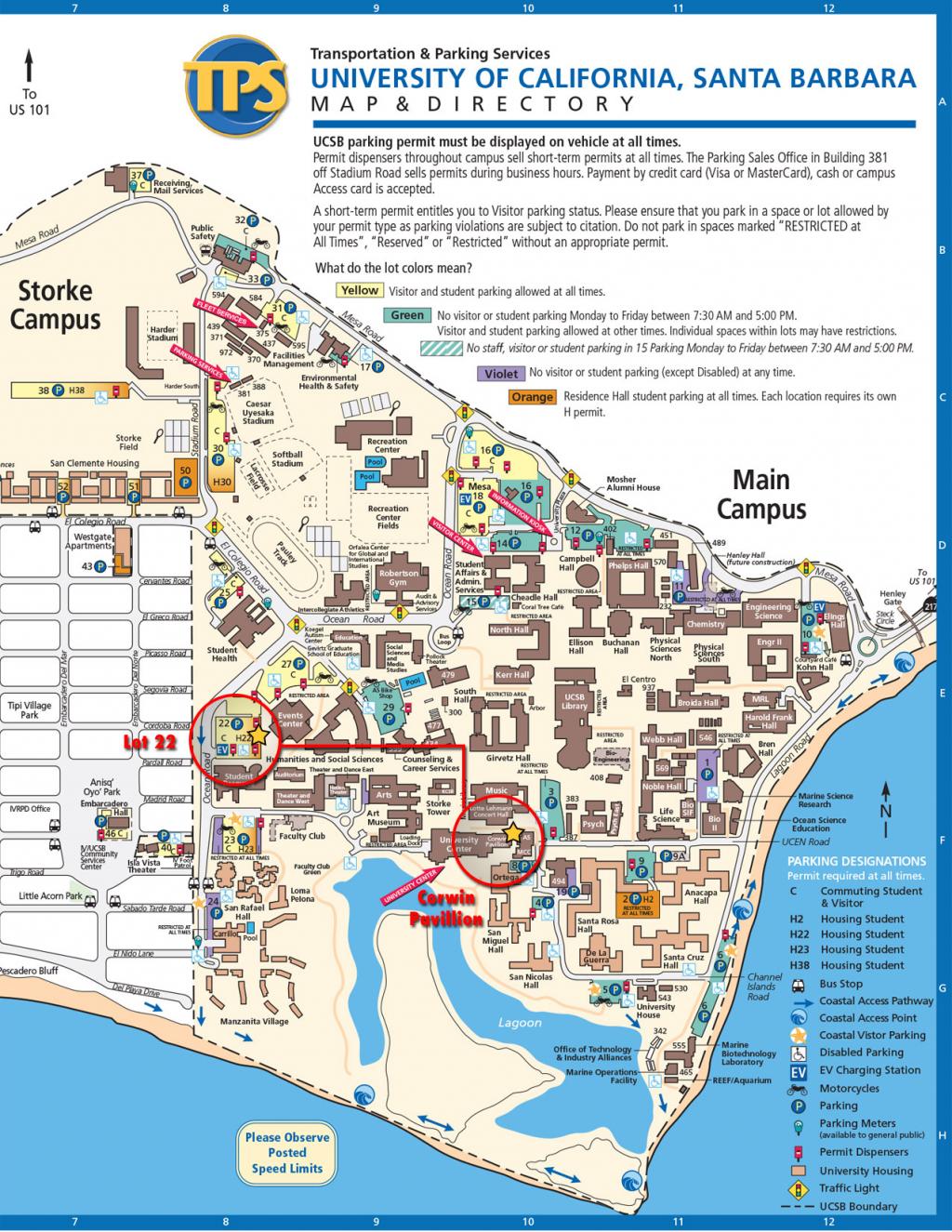 Guests are advised to purchase a parking permit in Lot 22 and walk to Corwin Pavilion. A map of the campus can be found here: